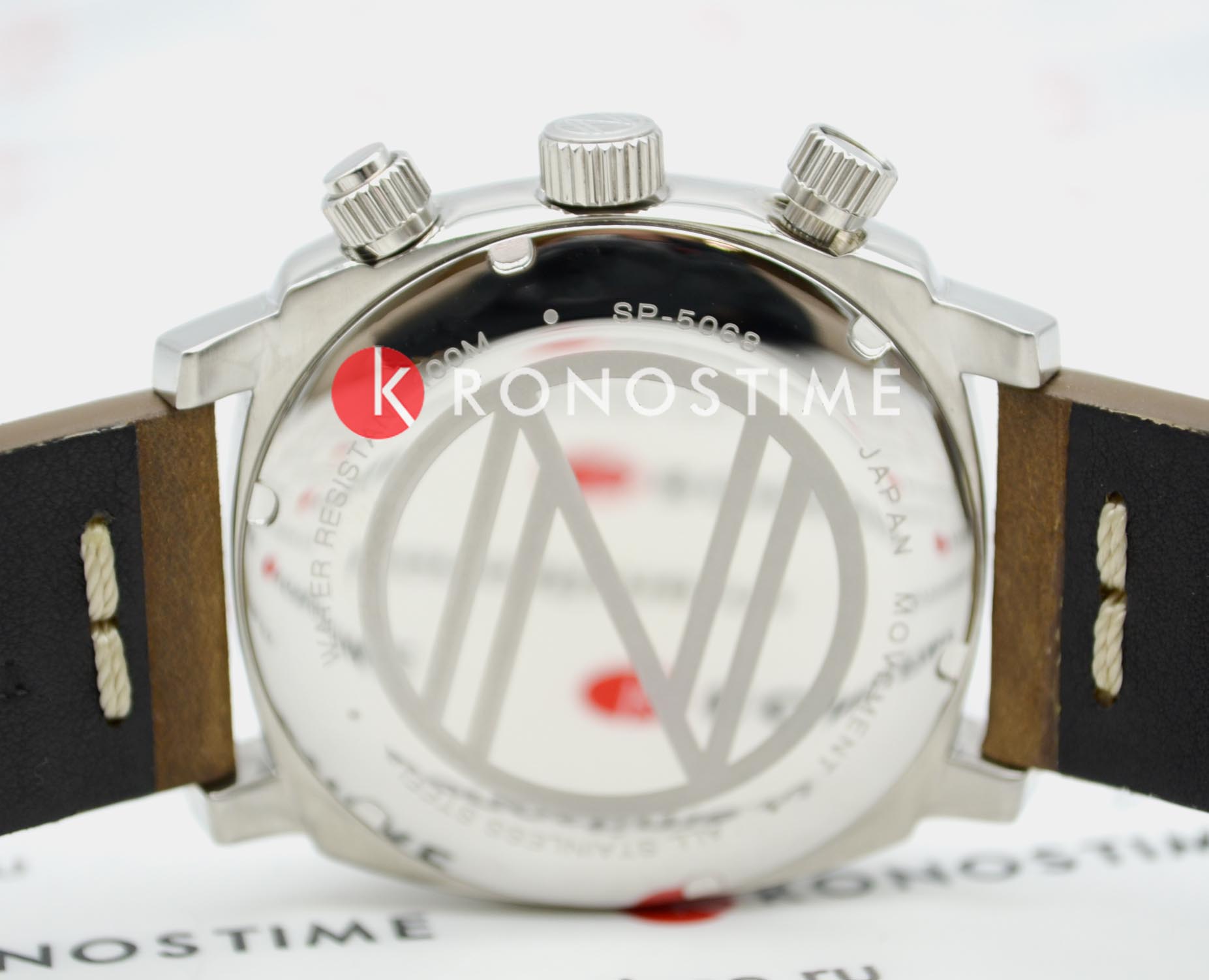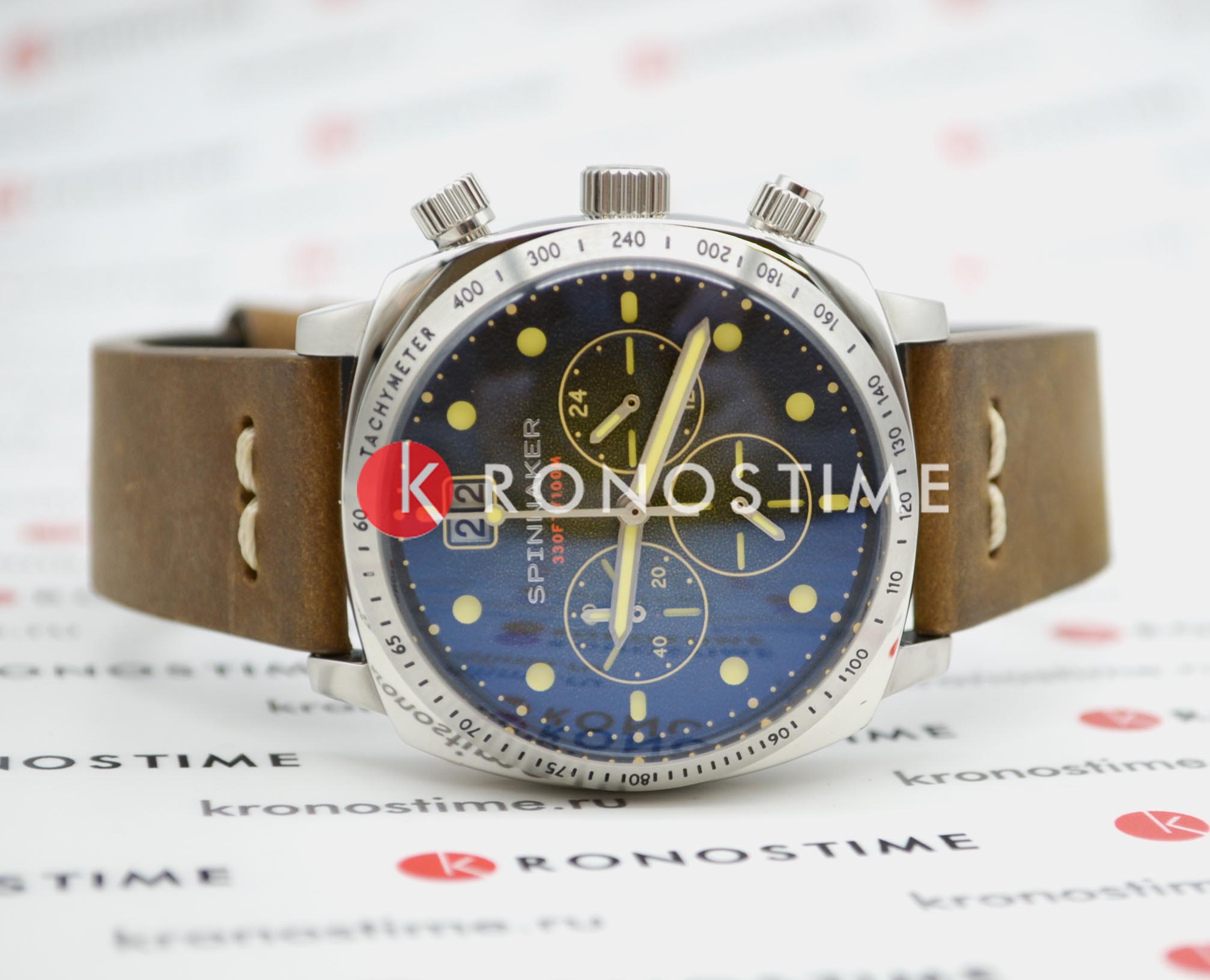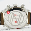 Мужской кварцевый хронографХронографФункция позволяет измерять отрезки времени с особой точностью: часы, минуты, секунды. Верным признаком хронографа является наличие на циферблате 3 дополнительных окошек-счётчиков. с секундомеромСекундомерСекундоме́р — прибор, способный измерять интервалы времени с точностью до долей секунды. и тахиметромТахиметрРазмеченная шкала, располагается на ободке или безеле часов. Тахиметр позволяет рассчитать скорость на определённом участке пути, расстояние измеряется в километрах или милях.. Калибр механизма TMI VK73. Центральные часовая и минутная стрелки, секундная стрелка вынесена на малый циферблат. Большая дата в позиции 12 часов. 12/24х часовой формат времени. Корпус выполнен из нержавеющей стали. Коричневый кожаный ремешок шириной 22 мм, стандартная застежка. Циферблат с люминесцентным покрытиемЛюминесцентное покрытиеПозволяет считывать показания времени в темноте. Производители наносят на стрелки, часовые индексы, безель или поверхность циферблата светонакопительный состав, дающий холодное свечение. стрелок и меток, дополнен выпуклым минеральным стекломМинеральное стеклоМинеральное стекло представляет собой искусственно выращенный минерал кварца. Такое стекло отличается особой устойчивостью к повреждениям и царапинам. Уступает по некоторым качествам сапфировому стеклу. , устойчивым к мелким механическим повреждениям. Водостойкость WR 100 (плавание без погружения).