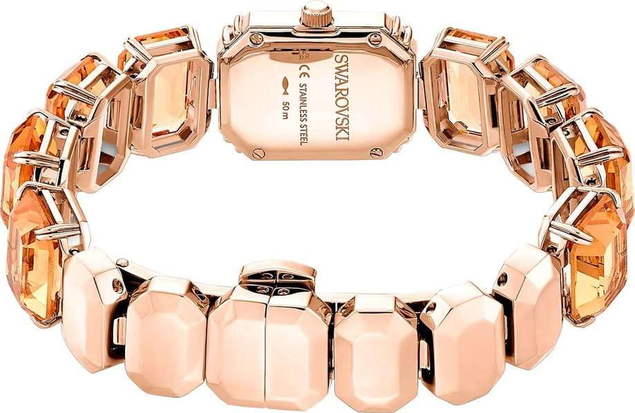 Элегантные часы Swarovski Millenia 5630831 добавят изысканности и утонченности в ваш повседневный образ. Эти изящные часы произведены в Швейцарии и оснащены надежным кварцевым механизмом, что гарантирует точное время и удобство в использовании. Часы выполнены в стильном восьмиугольном корпусе из стали с PVDPVDУльтратонкое покрытие наносится в технике вакуумного напыления, сочетает в себе нитрид титана особой прочности со слоем золота или оксида хрома. Несёт в себе декоративную или защитную функцию. покрытием цвета шампанского, который придает модели особый блеск и современный вид. Кристальный безельБезельВнешний ободок, закрепляющий стекло. В спортивных часах так называется поворотное кольцо с делениями на циферблате, выполняет роль таймера – замеряет отрезки времени на шкале. Неподвижный безель – элемент декора. Однонаправленно вращающийся безель на дайверских часах позволяет фиксировать моменты погружения и выныривания на поверхность., украшенный известными кристаллами Swarovski, добавляет дополнительное сияние и роскошь. Под сапфировым стекломСапфировое стеклоПрочный и надёжный материал из кристалла сапфира синтетического происхождения, характеризующийся особой твёрдостью и устойчивостью к царапинам и повреждениям. располагается золотистый циферблат, выполненный по технологии Sunray, создающий эффект солнечных лучей. Логотип Swarovski в виде лебедя изящно размещён в позиции 12 часов, а метки в виде точек из кристаллов украшают позиции 3, 6 и 9 часов. Мечевидные стрелки в стиле Sword подчеркивают изысканность и утонченность дизайна. Часы дополнены стальным браслетом с PVDPVDУльтратонкое покрытие наносится в технике вакуумного напыления, сочетает в себе нитрид титана особой прочности со слоем золота или оксида хрома. Несёт в себе декоративную или защитную функцию. покрытием цвета шампанского и застежкой «бабочка»Застёжка "бабочка"Такой вид застёжки дополняется предохранителями, помогающими избежать случайного раскрытия браслета. Обладают изящным исполнением. , который декорирован крупными коричневыми кристаллами Swarovski огранки октагон, добавляющими дополнительный акцент и шарм. С водозащитой до 50WR, эти часы сочетают в себе элегантность и практичность. Рифленая заводная головка и отсутствие секундной стрелки подчеркивают минимализм и изысканность дизайна. Эти часы станут идеальным аксессуаром для тех, кто ценит красоту и функциональность в одном изделии, добавляя вашему образу нотку роскоши и неповторимого стиля.