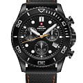 Часы Swiss Military SM34101.08 — это стильный мужской хронограф, который сочетает швейцарское качество и функциональность. Корпус диаметром 46 мм выполнен из нержавеющей стали с чёрным PVD-покрытиемPVDУльтратонкое покрытие наносится в технике вакуумного напыления, сочетает в себе нитрид титана особой прочности со слоем золота или оксида хрома. Несёт в себе декоративную или защитную функцию., что придаёт часам современный и прочный вид. Чёрный циферблат с люминесцентными стрелкамиЛюминесцентное покрытиеПозволяет считывать показания времени в темноте. Производители наносят на стрелки, часовые индексы, безель или поверхность циферблата светонакопительный состав, дающий холодное свечение. и метками обеспечивает превосходную читаемость даже в условиях низкой освещённости. Циферблат защищён сапфировым стекломСапфировое стеклоПрочный и надёжный материал из кристалла сапфира синтетического происхождения, характеризующийся особой твёрдостью и устойчивостью к царапинам и повреждениям., устойчивым к царапинам. Модель оснащена швейцарским кварцевым механизмом, обеспечивающим точное измерение времени. Хронограф позволяет отображать часы, минуты, секунды, а также дату, что добавляет удобства в повседневной жизни. Ремень из высококачественного каучука с оранжевой прострочкой и классической застёжкой обеспечивает комфортное ношение и надёжную фиксацию. Водозащита до 10 ATM делает часы подходящими для плавания и других водных активностей. Swiss Military — это идеальный выбор для мужчин, ценящих стиль, надёжность и функциональность.