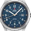 Модель SM34108.03 от Swiss Military by Chrono — это надёжные швейцарские часы в классическом армейском стиле, сочетающие функциональность и сдержанный дизайн. Корпус и браслет выполнены из нержавеющей стали, подчёркивая прочность и элегантность конструкции. Циферблат с арабскими цифрами обеспечивает отличную читаемость, а функция отображения даты добавляет практичности. Часы оснащены кварцевым механизмом, обеспечивающим точный ход. Циферблат защищён сапфировым стекломСапфировое стеклоПрочный и надёжный материал из кристалла сапфира синтетического происхождения, характеризующийся особой твёрдостью и устойчивостью к царапинам и повреждениям., устойчивым к царапинам. Установлена раскладная застёжкаРаскладная застёжкаТакой тип застёжки используется только на браслетах из металла. Она никогда не раскрывается полностью, происходит разделение на 2 и более частей. Раскладывающая застёжка снизит вероятность потери часов к минимуму. для надёжной фиксации на запястье. Модель обладает водонепроницаемостью до 100 метров, что делает её подходящей для плавания и сноркелинга.