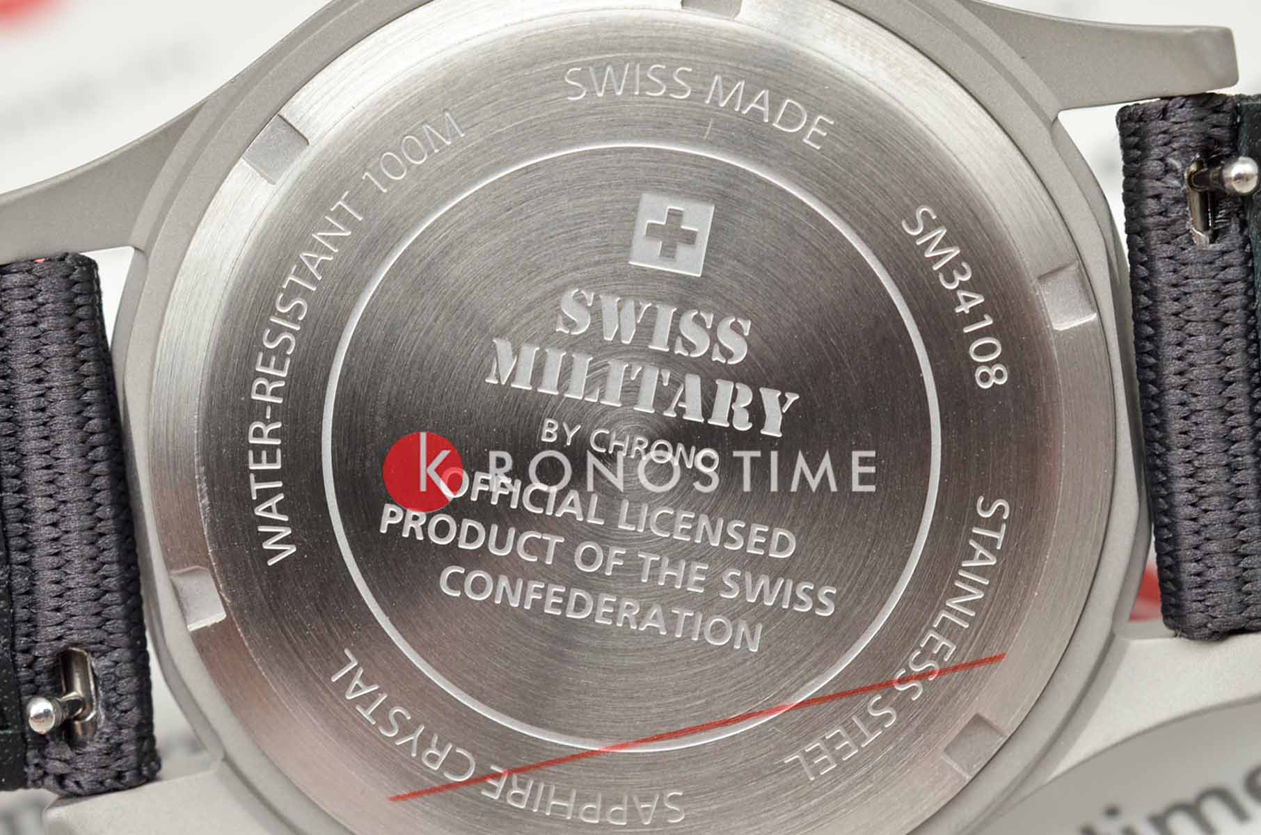 Модель SM34108.05 от Swiss Military by Chrono — это надёжные швейцарские часы в классическом армейском стиле, сочетающие функциональность и сдержанный дизайн. Корпус выполнен из нержавеющей стали с PVD-покрытиемPVDУльтратонкое покрытие наносится в технике вакуумного напыления, сочетает в себе нитрид титана особой прочности со слоем золота или оксида хрома. Несёт в себе декоративную или защитную функцию., подчёркивая прочность и элегантность конструкции. Циферблат с арабскими цифрами обеспечивает отличную читаемость, а функция отображения даты добавляет практичности. Часы оснащены кварцевым механизмом, обеспечивающим точный ход. Циферблат защищён сапфировым стекломСапфировое стеклоПрочный и надёжный материал из кристалла сапфира синтетического происхождения, характеризующийся особой твёрдостью и устойчивостью к царапинам и повреждениям., устойчивым к царапинам. Тканевый ремешок на стандартной застежке для надёжной фиксации на запястье. Модель обладает водонепроницаемостью до 100 метров, что делает её подходящей для плавания и сноркелинга.