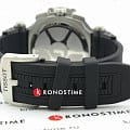 Оригинальный аксессуар в чёрно-серебряном цвете обладает характерными крупными деталями, идёт отсылка к деталям гоночных мотоциклов. Задняя крышка корпуса сделана в виде колеса, безельБезельВнешний ободок, закрепляющий стекло. В спортивных часах так называется поворотное кольцо с делениями на циферблате, выполняет роль таймера – замеряет отрезки времени на шкале. Неподвижный безель – элемент декора. Однонаправленно вращающийся безель на дайверских часах позволяет фиксировать моменты погружения и выныривания на поверхность. напоминает тормозную колодку. Наручные часы оснащены кварцевым механизмом швейцарского производства ETA G10.212. ХронографХронографФункция позволяет измерять отрезки времени с особой точностью: часы, минуты, секунды. Верным признаком хронографа является наличие на циферблате 3 дополнительных окошек-счётчиков. позволяет измерять показатели с особой точностью. Чёрное PVD-покрытиеPVDУльтратонкое покрытие наносится в технике вакуумного напыления, сочетает в себе нитрид титана особой прочности со слоем золота или оксида хрома. Несёт в себе декоративную или защитную функцию. корпуса. Сапфировое стекло. Водостойкость при давлении 10 бар. Секундомер, индикация даты. Люминесцентная подсветкаЛюминесцентное покрытиеПозволяет считывать показания времени в темноте. Производители наносят на стрелки, часовые индексы, безель или поверхность циферблата светонакопительный состав, дающий холодное свечение.. Габариты: 47,6 x 43 x 12,3 мм.