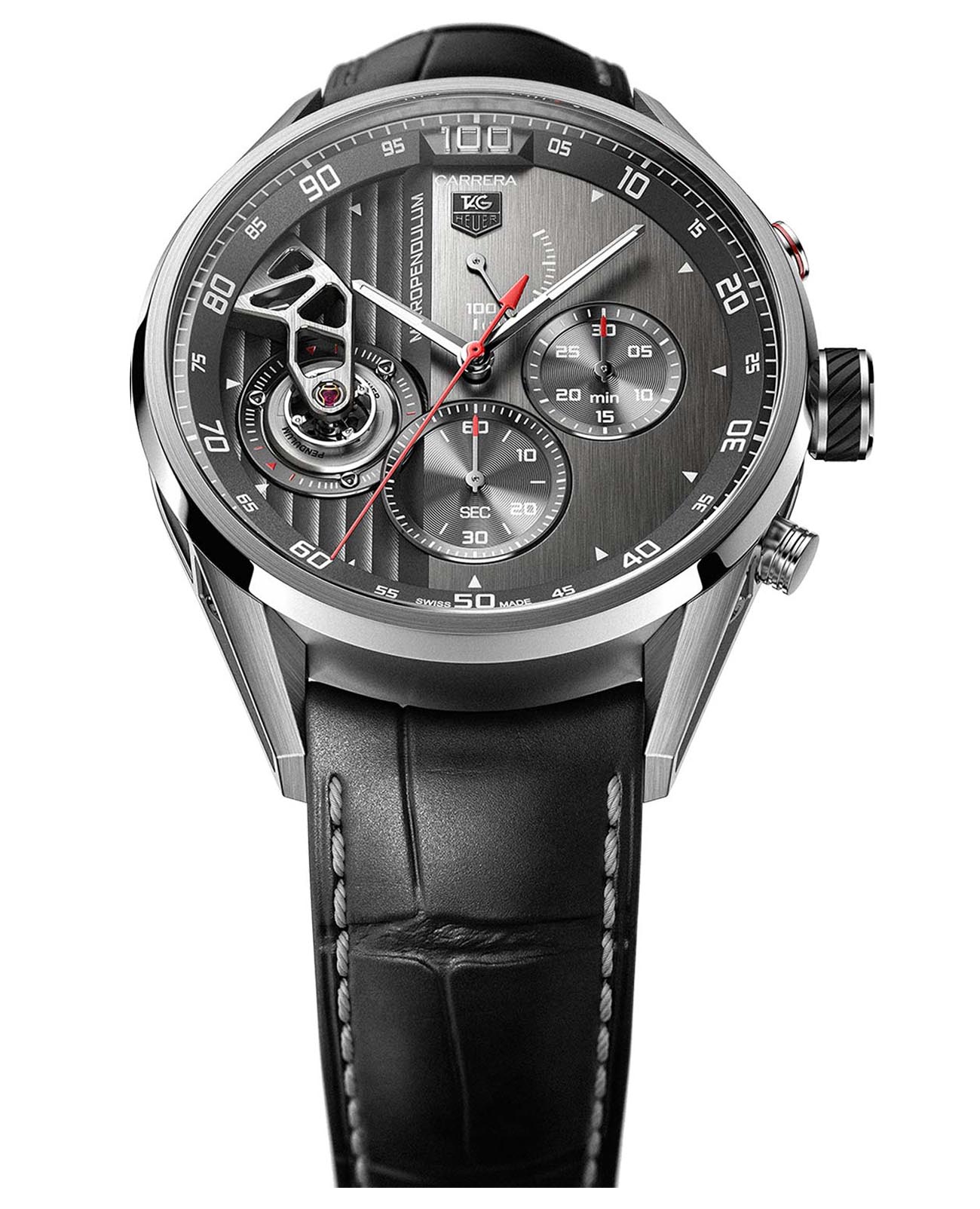 Механические мужские швейцарские часы-хронограф TAG Heuer Carrera CAR2B82.FC6339. TAG Heuer Carrera MikroPendulum - это новый этап эволюции платформы Mikro - семейства механизмов, быстро завоевавших репутацию одних из самых радикальных и инновационных калибров, предлагаемых современными часовыми мастерами. Это уникальный хронографХронографФункция позволяет измерять отрезки времени с особой точностью: часы, минуты, секунды. Верным признаком хронографа является наличие на циферблате 3 дополнительных окошек-счётчиков., способный стать вашим любимым аксессуаром, который несомненно подчеркнет ваш статус. Часы с магнитным маятниковым хронографом и секундомеромСекундомерСекундоме́р — прибор, способный измерять интервалы времени с точностью до долей секунды. с точностью до 1/100 секунды и запасом автономного хода в 70 минут. Циферблат с люминесцентным покрытиемЛюминесцентное покрытиеПозволяет считывать показания времени в темноте. Производители наносят на стрелки, часовые индексы, безель или поверхность циферблата светонакопительный состав, дающий холодное свечение. стрелок. Титановый корпус с сочетанием пескоструйной обработки, матирования и полировки. В механизме 58 камней, 371 деталь, частота 28800 полуколебаний в час. Запас хода для часов - 42 часа, для хронографа - 90 минут. Ретроградный указатель запаса хода в позиции 12 часов. Центральная красная стрелка отсчитывает сотые доли секунды, шкала которых расположена на внутреннем безеле. Циферблат антрацитового цвета состоит из двух частей: одна часть с матовой отделкой, вторая - с узором Cotes de Geneve. Прозрачная задняя крышка с сапфировым стеклом. Ремешок из кожи аллигатора с раскладывающейся застежкой.