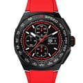Мужские механические часы TAG Heuer Formula 1 Chronograph CBZ2085.FT8093 — это стильное сочетание элегантности и современного дизайна. Корпус из титана 2-го класса диаметром 44 мм c DLC-покрытиемDLC-покрытиеDiamond like carbon - одно из лучших видов покрытия, представляющее собой углерод с алмазными свойствами. На поверхность материала наносятся распавшиеся молекулы углерода, превращающиеся в плёнку из алмазоподобных связей, которая перенимает твёрдость алмаза. идеально сбалансирован и элегантен. Сапфировое стеклоСапфировое стеклоПрочный и надёжный материал из кристалла сапфира синтетического происхождения, характеризующийся особой твёрдостью и устойчивостью к царапинам и повреждениям. с антибликовым покрытием защищает циферблат от царапин и обеспечивает отличную читаемость при любом освещении. Резиновый ремешок на стандартной застежке идеально дополняют дизайн часов, обеспечивая комфортное ношение. Стрелки и метки на циферблате имеют люминесцентное покрытиеЛюминесцентное покрытиеПозволяет считывать показания времени в темноте. Производители наносят на стрелки, часовые индексы, безель или поверхность циферблата светонакопительный состав, дающий холодное свечение. позволяющее легко определять время даже в темноте. БезельБезельВнешний ободок, закрепляющий стекло. В спортивных часах так называется поворотное кольцо с делениями на циферблате, выполняет роль таймера – замеряет отрезки времени на шкале. Неподвижный безель – элемент декора. Однонаправленно вращающийся безель на дайверских часах позволяет фиксировать моменты погружения и выныривания на поверхность. тахиметраТахиметрРазмеченная шкала, располагается на ободке или безеле часов. Тахиметр позволяет рассчитать скорость на определённом участке пути, расстояние измеряется в километрах или милях. подчёркивает спортивное наследие часов. Часы обладают впечатляющей водонепроницаемостью до 20 бар (200 метров), что делает их идеальными для плавания, ныряния и погружений с аквалангом. Автоматический хронографХронографФункция позволяет измерять отрезки времени с особой точностью: часы, минуты, секунды. Верным признаком хронографа является наличие на циферблате 3 дополнительных окошек-счётчиков. обеспечивает точное измерение времени на каждом круге. Запас хода до 42 часов. Прочная конструкция часов и высокопроизводительный механизм делают их идеальным спутником для любителей гонок.