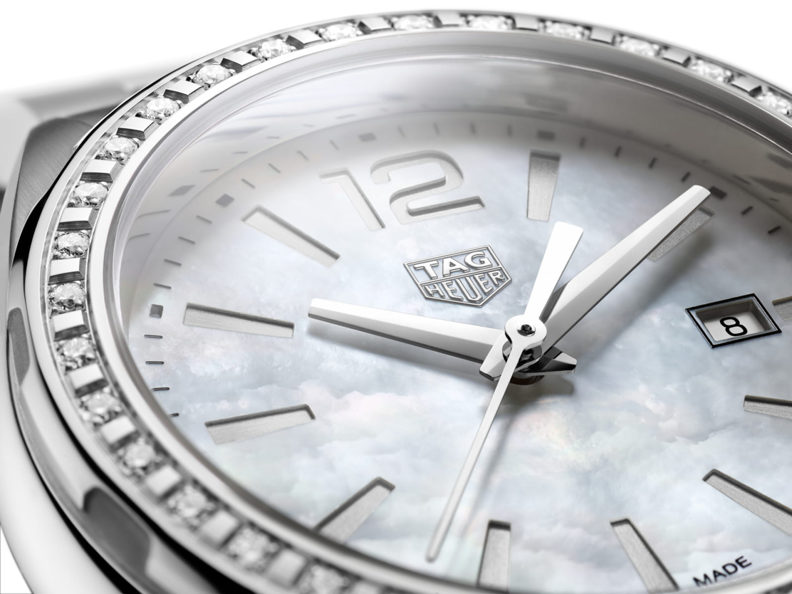Швейцарские женские часы TAG Heuer Formula 1 — это воплощение элегантности, роскоши и точности. Модель WBJ141A.BA0664 из коллекции Formula 1 вдохновлена миром автоспорта, сочетая в себе динамику, выносливость и безупречный стиль. Корпус диаметром 32 мм выполнен из высококачественной нержавеющей стали 316L, что обеспечивает долговечность и устойчивость к внешним воздействиям. Циферблат с эффектом sunray добавляет модели особую привлекательность и элегантность. Циферблат защищен прочным сапфировым стекломСапфировое стеклоПрочный и надёжный материал из кристалла сапфира синтетического происхождения, характеризующийся особой твёрдостью и устойчивостью к царапинам и повреждениям., которое не царапается при механическом воздействии и гарантирует четкую видимость показаний в любых условиях. Безель декорирован 36 бриллиантами, что делает модель особенно роскошной и премиальной. Окошко даты расположено в удобном месте на циферблате, добавляя функциональности. Механизм часов кварцевый, что гарантирует исключительную точность хода. Водозащита до 10 атм (WR100) делает эти часы подходящими для плавания и других водных видов спорта. Браслет из нержавеющей стали оснащен надежной раскладывающейся застежкой с кнопками Раскладная застёжкаТакой тип застёжки используется только на браслетах из металла. Она никогда не раскрывается полностью, происходит разделение на 2 и более частей. Раскладывающая застёжка снизит вероятность потери часов к минимуму., обеспечивающей комфортную фиксацию на запястье.