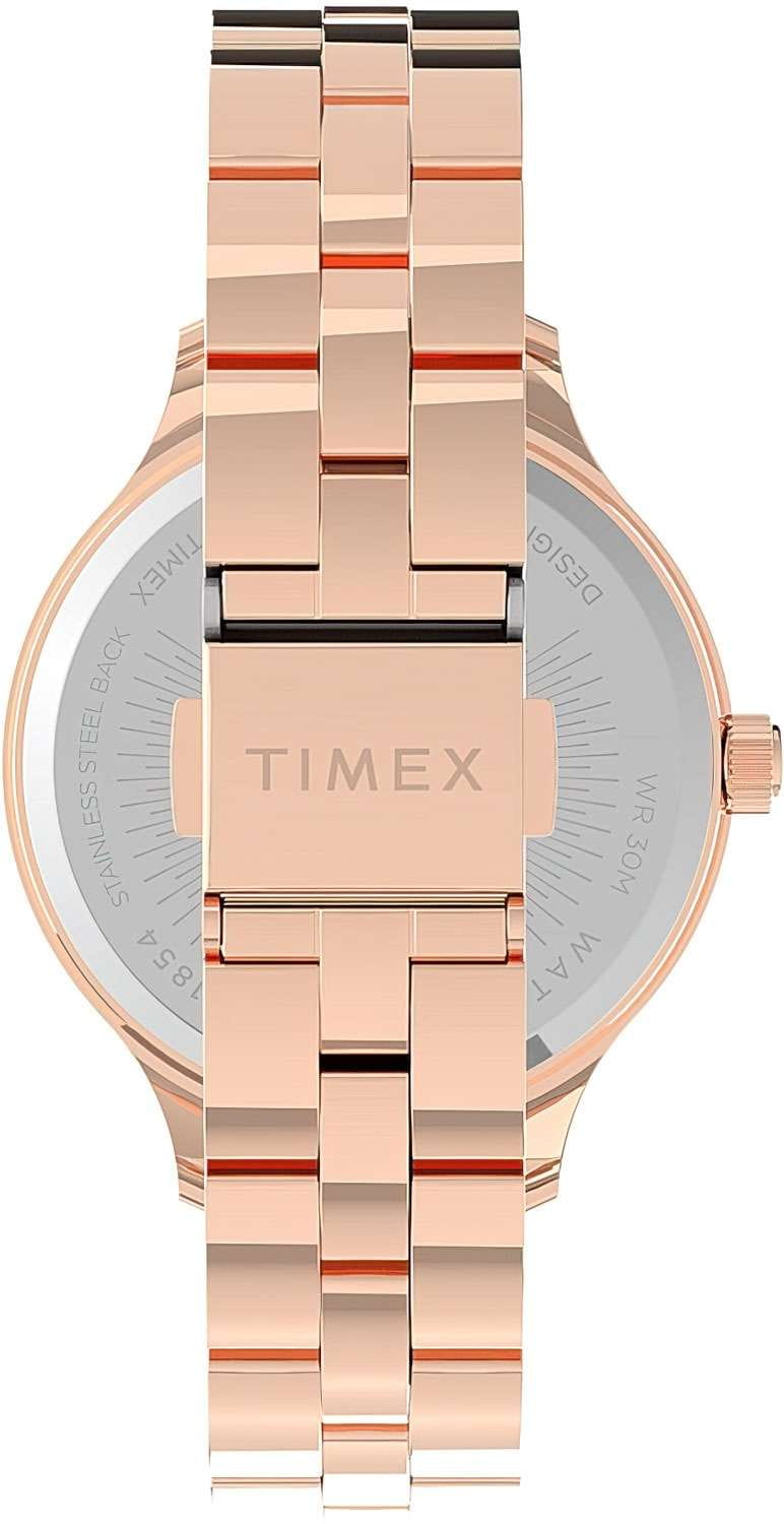 Изысканные часы Timex TW2V23400 станут прекрасным дополнением вашего образа и подчеркнут вашу индивидуальность. Эти часы, разработанные в США, сочетают в себе элегантность и современные технологии. Корпус часов выполнен из латуни с розовым PVDPVDУльтратонкое покрытие наносится в технике вакуумного напыления, сочетает в себе нитрид титана особой прочности со слоем золота или оксида хрома. Несёт в себе декоративную или защитную функцию. покрытием, что придаёт им утончённый и стильный вид. Розовый циферблат сдержанного дизайна украшен метками в виде точек и цветков, что добавляет часам особого шарма. Листовидные стрелки в стиле Feuille подчёркивают изящество дизайна, а отсутствие секундной стрелки делает облик часов ещё более минималистичным. Часы оснащены надёжным кварцевым механизмом, который обеспечивает точный ход и долговечность. Минеральное стеклоМинеральное стеклоМинеральное стекло представляет собой искусственно выращенный минерал кварца. Такое стекло отличается особой устойчивостью к повреждениям и царапинам. Уступает по некоторым качествам сапфировому стеклу. защищает циферблат от царапин и повреждений, сохраняя его первозданный вид на протяжении долгого времени. Рифлёная заводная головка добавляет удобства в использовании. Водозащита 30WR позволяет не беспокоиться о случайных брызгах воды, делая эти часы подходящими для повседневного ношения. Стальной браслет с розовым PVDPVDУльтратонкое покрытие наносится в технике вакуумного напыления, сочетает в себе нитрид титана особой прочности со слоем золота или оксида хрома. Несёт в себе декоративную или защитную функцию. покрытием и раскладной застёжкойРаскладная застёжкаТакой тип застёжки используется только на браслетах из металла. Она никогда не раскрывается полностью, происходит разделение на 2 и более частей. Раскладывающая застёжка снизит вероятность потери часов к минимуму. обеспечивает комфорт и надёжность, прекрасно дополняя общий дизайн часов. С диаметром корпуса 36 мм и шириной браслета 14 мм, эти часы идеально подходят для изящного запястья, становясь акцентом любого наряда. Эти часы — отличный выбор для тех, кто ищет стильный и функциональный аксессуар.