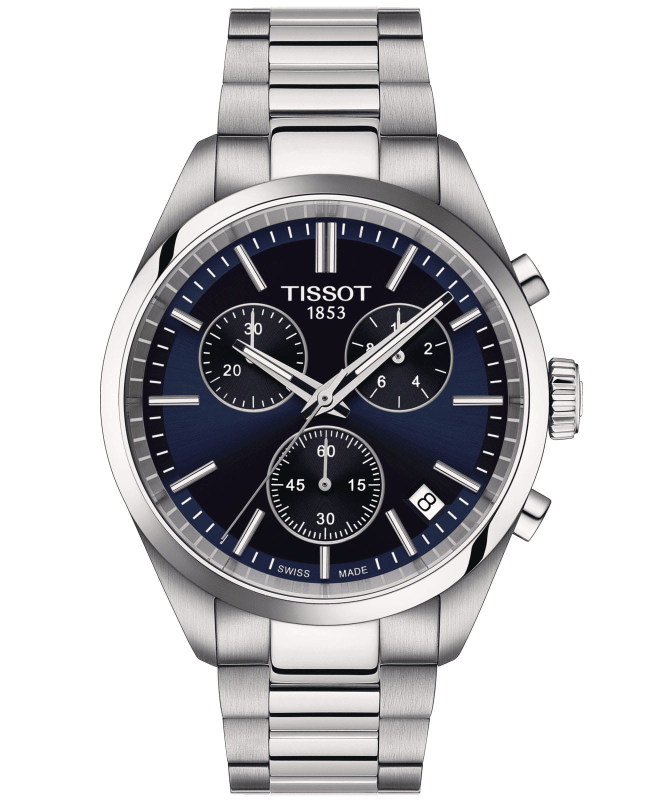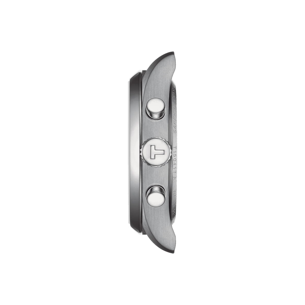 Мужские швейцарские часы Tissot PR 100 Chronograph T150.417.11.041.00, кварцевый механизм с высокой точностью. Сапфировое стеклоСапфировое стеклоПрочный и надёжный материал из кристалла сапфира синтетического происхождения, характеризующийся особой твёрдостью и устойчивостью к царапинам и повреждениям. устойчивое к появлению царапин, обладающее высокой прозрачностью. Корпус часов изготовлен из нержавеющей стали. Стрелки с люминесцентным покрытиемЛюминесцентное покрытиеПозволяет считывать показания времени в темноте. Производители наносят на стрелки, часовые индексы, безель или поверхность циферблата светонакопительный состав, дающий холодное свечение.. Окошко даты в положении 3 часов. Класс водозащиты: 100 метров, позволит плавать, нырять и заниматься другими водными видами спорта. Стальной браслет на застёжке-бабочке с кнопкамиЗастёжка "бабочка"Такой вид застёжки дополняется предохранителями, помогающими избежать случайного раскрытия браслета. Обладают изящным исполнением. . Хронограф с функцией фиксации нескольких результатов.