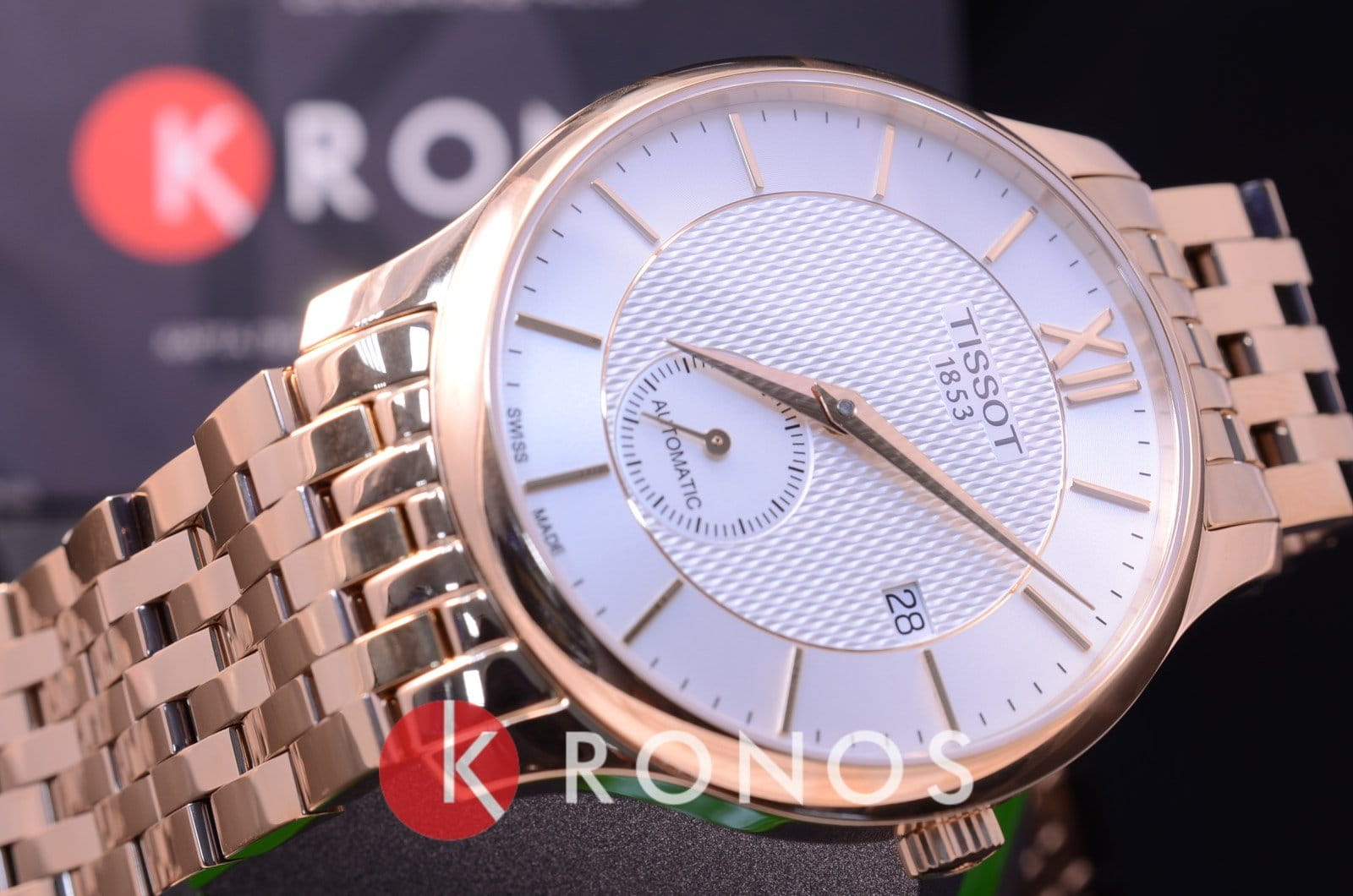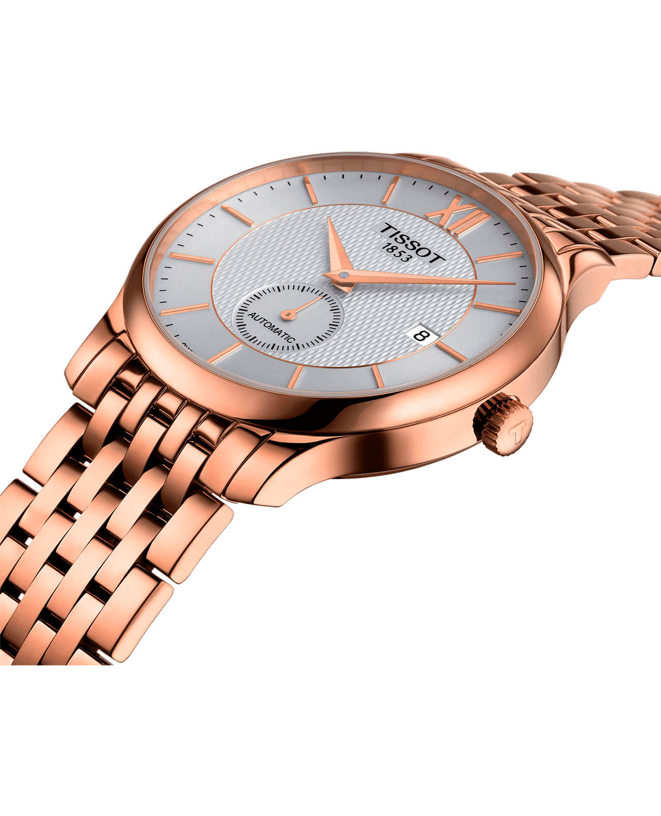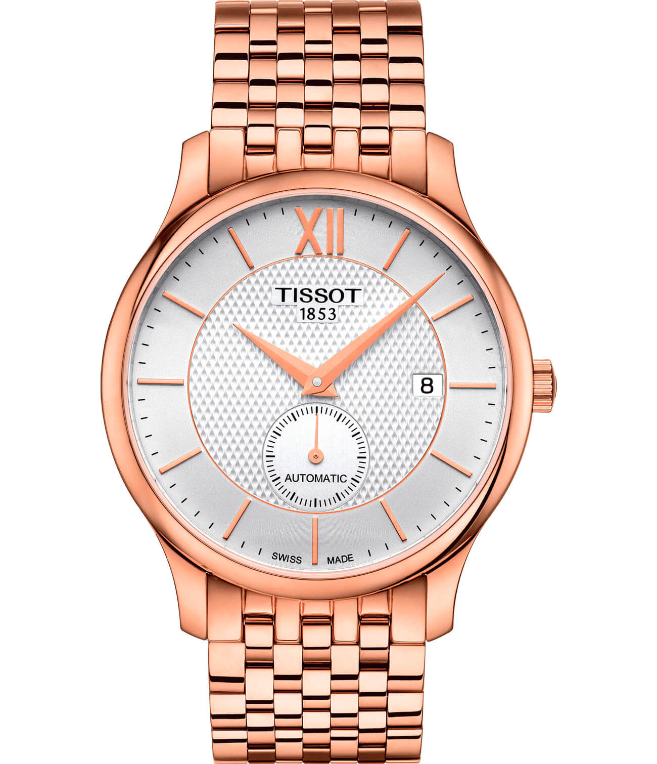 Брендовые наручные часы в цвете розового золота привлекут к себе внимание окружающих, помогут разнообразить строгий офисный или деловой стиль. Необычный оттенок получают за счёт слоя PVD-покрытияPVDУльтратонкое покрытие наносится в технике вакуумного напыления, сочетает в себе нитрид титана особой прочности со слоем золота или оксида хрома. Несёт в себе декоративную или защитную функцию., устойчивого к износу. Циферблат с отдельным секундным окошком украшен узором. Часы с автоматической системой завода имеют механизм ETA 2825-2 с запасом хода 38 часов. Надёжное сапфировое стекло. Корпус из долговечной хирургической стали. Отображение даты. Габариты: 40 x 40 x 11 мм.