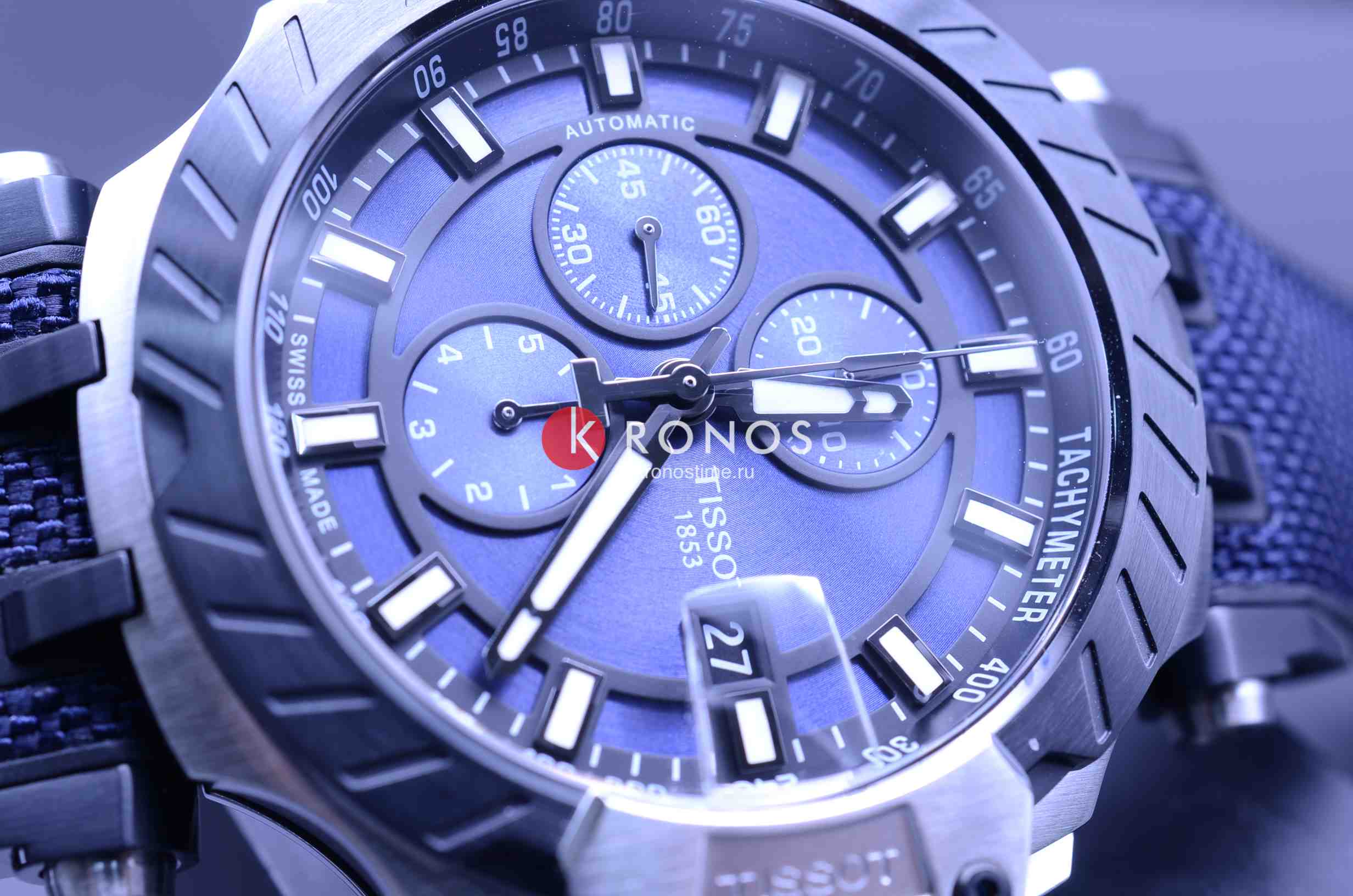БезельБезельВнешний ободок, закрепляющий стекло. В спортивных часах так называется поворотное кольцо с делениями на циферблате, выполняет роль таймера – замеряет отрезки времени на шкале. Неподвижный безель – элемент декора. Однонаправленно вращающийся безель на дайверских часах позволяет фиксировать моменты погружения и выныривания на поверхность. выполнен в образе тормозного диска, чёрный цвет сочетается с синими переливами массивного циферблата со счётчиками хронографаХронографФункция позволяет измерять отрезки времени с особой точностью: часы, минуты, секунды. Верным признаком хронографа является наличие на циферблате 3 дополнительных окошек-счётчиков.. Задняя крышка сделана в виде колеса. Механические часы с автоподзаводом оснащены швейцарским механизмом C01.211, сохраняющим запас хода до 40 часов. Корпус из долговечной стали 316L с PVD-покрытиемPVDУльтратонкое покрытие наносится в технике вакуумного напыления, сочетает в себе нитрид титана особой прочности со слоем золота или оксида хрома. Несёт в себе декоративную или защитную функцию.. Ремешок из каучука и натуральной кожи. Секундомер, календарь, тахиметрТахиметрРазмеченная шкала, располагается на ободке или безеле часов. Тахиметр позволяет рассчитать скорость на определённом участке пути, расстояние измеряется в километрах или милях.. Габариты: 48,8 x 45 x 16,6 мм.