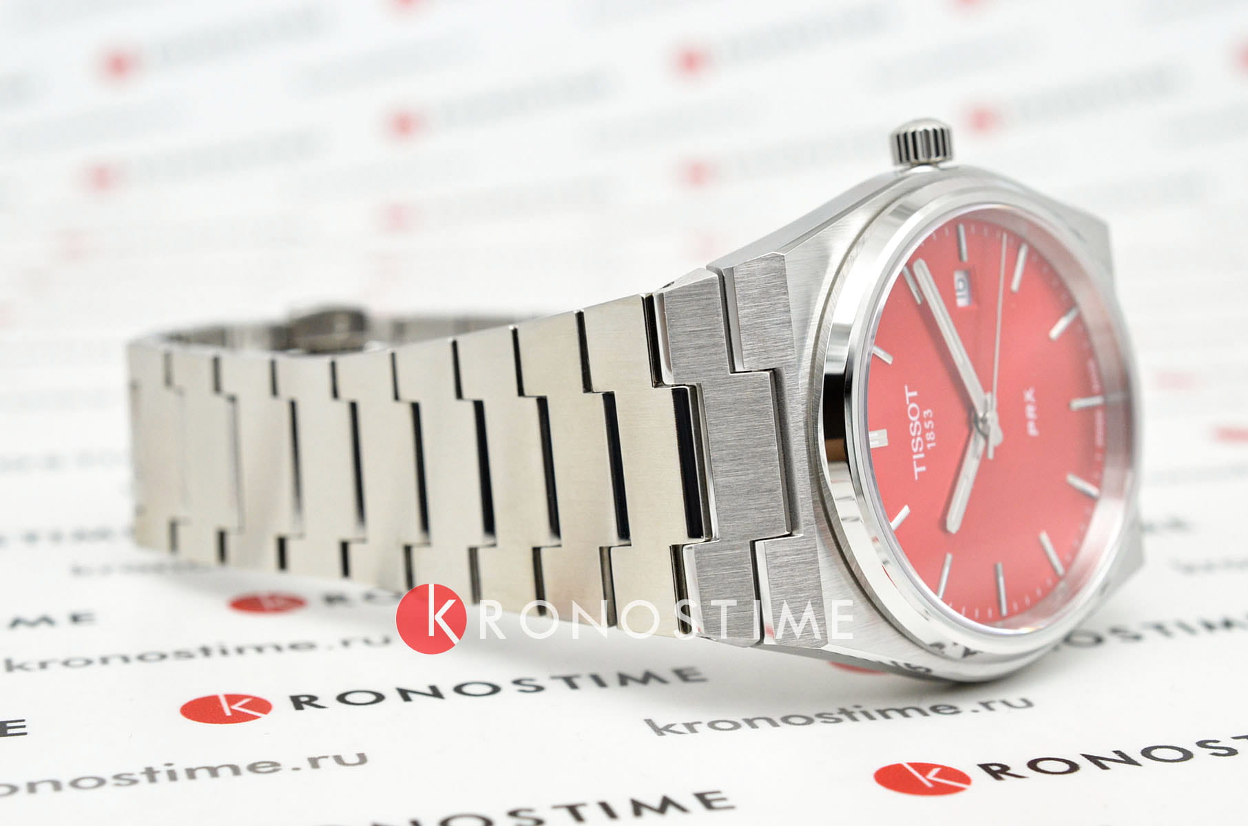 Мужские часы Tissot PRX Quartz 40 мм T137.410.11.421.00 выполнены в классическом круглом корпусе диаметром 40 мм из нержавеющей стали 316L, что обеспечивает высокую прочность и устойчивость к внешним воздействиям. Модель оснащена кварцевым механизмом с функцией индикации окончания срока службы батареи EOLEOLПредставляет собой систему, уведомляющую владельца часов о необходимости замены элемента питания. За 2 недели до полного разряда батарейки секундная стрелка перестаёт ходить чётко и начинает перепрыгивать на 3-4 деления., питание от батарейки типа Renata 371. Это гарантирует точность хода и минимальное обслуживание. Циферблат красного цвета дополнен индексами, а также стрелками и метками с люминесцентным покрытием Super-LumiNova® люминесцентным покрытиемЛюминесцентное покрытиеПозволяет считывать показания времени в темноте. Производители наносят на стрелки, часовые индексы, безель или поверхность циферблата светонакопительный состав, дающий холодное свечение. для лучшей читаемости в темноте. Функция отображения даты находится на 3 часах, что делает её легко доступной. Защиту циферблата обеспечивает сапфировое стекло сапфировое стеклоСапфировое стеклоПрочный и надёжный материал из кристалла сапфира синтетического происхождения, характеризующийся особой твёрдостью и устойчивостью к царапинам и повреждениям. с антибликовым покрытием антибликовым покрытиемАнтибликовое покрытиеСлой оксида металла в 0,13-0,3 микрон, благодаря которому стекло часов не бликует и не отражает свет. Антибликовое покрытие уменьшает отражение света в 10 раз, обеспечивая отличную читаемость показателей циферблата., защищающее от царапин и улучшающее восприятие информации. Водозащита позволяет использовать часы в повседневных условиях без риска повреждения от случайных брызг воды. Часы установлены на металлический браслет из нержавеющей стали 316L с застёжкой-бабочкой с кнопками застёжка-бабочка с кнопкамиЗастёжка "бабочка"Такой вид застёжки дополняется предохранителями, помогающими избежать случайного раскрытия браслета. Обладают изящным исполнением. , обеспечивающей комфорт и надёжную фиксацию на запястье. Браслет можно быстро заменить благодаря системе быстросъёмных звеньев. Часы являются сочетанием швейцарского качества, технологичности и современного дизайна для уверенных в себе мужчин.