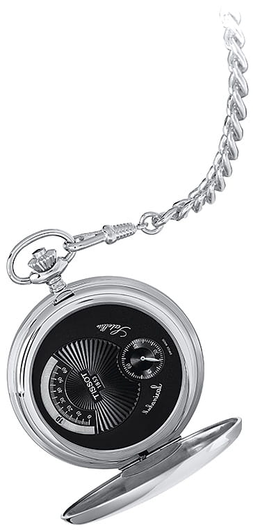 Карманные швейцарские механические часы с минеральным стекломМинеральное стеклоМинеральное стекло представляет собой искусственно выращенный минерал кварца. Такое стекло отличается особой устойчивостью к повреждениям и царапинам. Уступает по некоторым качествам сапфировому стеклу. Tissot T-Pocket Mechanical T851.405.99.050.00, механизм с ручным заводом с высокой точностью.