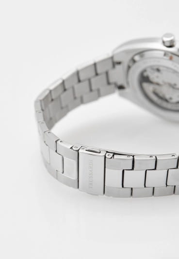 Итальянские мужские часы Trussardi Metropolitan R2423159001 - это стильный мужской аксессуар, который сочетает элегантный дизайн и практичность. Корпус выполнен из нержавеющей стали, что обеспечивает долговечность и утончённый внешний вид. Надежное минеральное стеклоМинеральное стеклоМинеральное стекло представляет собой искусственно выращенный минерал кварца. Такое стекло отличается особой устойчивостью к повреждениям и царапинам. Уступает по некоторым качествам сапфировому стеклу. с сапфировым покрытием защищает циферблат от царапин и обеспечивает долговечность. Стрелки и метки оснащены люминесцентным покрытиемЛюминесцентное покрытиеПозволяет считывать показания времени в темноте. Производители наносят на стрелки, часовые индексы, безель или поверхность циферблата светонакопительный состав, дающий холодное свечение., обеспечивающим отличную видимость даже при слабом освещении. Сквозь прозрачное окошко на циферблате можно наблюдать за работой механизма часов. Модель оснащена механическим механизмом с автоподзаводом, обеспечивающим высокую точность хода. Браслет из нержавеющей стали с раскладной застёжкойРаскладная застёжкаТакой тип застёжки используется только на браслетах из металла. Она никогда не раскрывается полностью, происходит разделение на 2 и более частей. Раскладывающая застёжка снизит вероятность потери часов к минимуму. обеспечивает комфортное ношение. Водозащита 50 метров позволит защитить корпус от случайных брызг или капель дождя. Эта модель – отличный выбор для тех, кто ищет сочетание стиля, качества и функциональности. Часы станут не только полезным аксессуаром, но и выразительным элементом вашего имиджа.