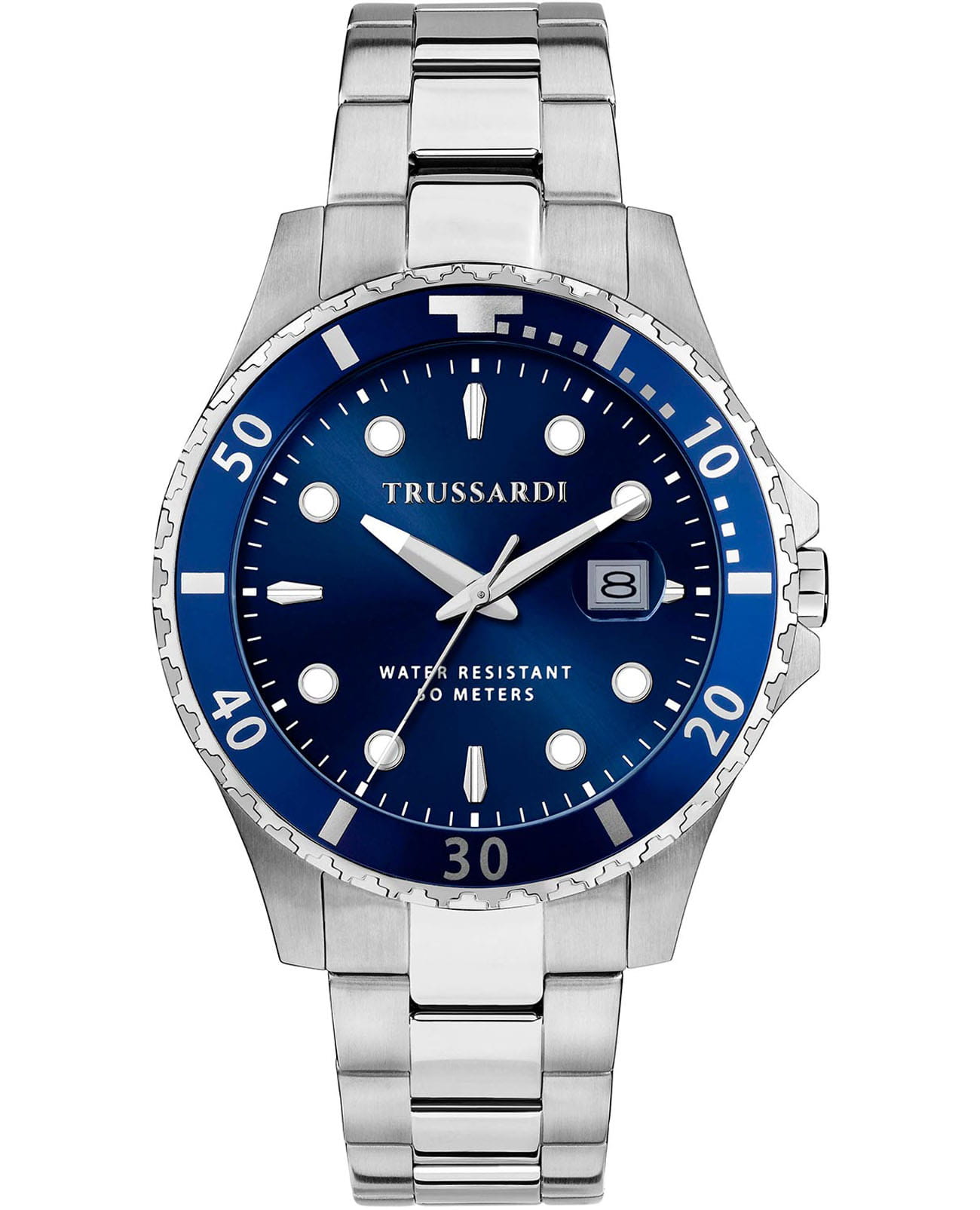 Итальянские мужские часы Trussardi City Life R2453169006 - это стильный мужской аксессуар, который сочетает элегантный дизайн и практичность. Корпус выполнен из нержавеющей стали с безелемБезельВнешний ободок, закрепляющий стекло. В спортивных часах так называется поворотное кольцо с делениями на циферблате, выполняет роль таймера – замеряет отрезки времени на шкале. Неподвижный безель – элемент декора. Однонаправленно вращающийся безель на дайверских часах позволяет фиксировать моменты погружения и выныривания на поверхность. с IP-покрытиемIP-покрытиеМетод ионного напыления. Демонстрирует повышенную устойчивость к истиранию, окислению и химическим веществам. Под воздействием высокого давления и температуры около 1500°C молекулы металла надёжно соединяются с частицами корпуса часов., что обеспечивает долговечность и утончённый внешний вид. Надежное минеральное стеклоМинеральное стеклоМинеральное стекло представляет собой искусственно выращенный минерал кварца. Такое стекло отличается особой устойчивостью к повреждениям и царапинам. Уступает по некоторым качествам сапфировому стеклу. защищает циферблат от царапин и обеспечивает долговечность. Модель оснащена кварцевым механизмом, обеспечивающим высокую точность хода. Браслет из нержавеющей стали с раскладной застёжкойРаскладная застёжкаТакой тип застёжки используется только на браслетах из металла. Она никогда не раскрывается полностью, происходит разделение на 2 и более частей. Раскладывающая застёжка снизит вероятность потери часов к минимуму. обеспечивает комфортное ношение. Водозащита 50 метров позволит защитить корпус от случайных брызг или капель дождя. Окошко даты в положении 3 часов. Стрелки метки оснащены люминесцентным покрытиемЛюминесцентное покрытиеПозволяет считывать показания времени в темноте. Производители наносят на стрелки, часовые индексы, безель или поверхность циферблата светонакопительный состав, дающий холодное свечение., обеспечивающим отличную видимость даже при слабом освещении. Эта модель – отличный выбор для тех, кто ищет сочетание стиля, качества и функциональности. Часы станут не только полезным аксессуаром, но и выразительным элементом вашего имиджа.