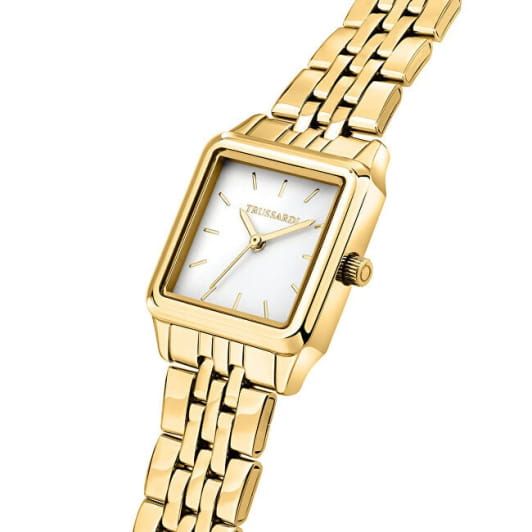 Итальянские женские часы Trussardi T-Forma R2453173501 - это стильный женский аксессуар, который сочетает элегантный дизайн и практичность. Корпус выполнен из нержавеющей стали с IP-покрытиемIP-покрытиеМетод ионного напыления. Демонстрирует повышенную устойчивость к истиранию, окислению и химическим веществам. Под воздействием высокого давления и температуры около 1500°C молекулы металла надёжно соединяются с частицами корпуса часов., что обеспечивает долговечность и утончённый внешний вид. Надежное минеральное стеклоМинеральное стеклоМинеральное стекло представляет собой искусственно выращенный минерал кварца. Такое стекло отличается особой устойчивостью к повреждениям и царапинам. Уступает по некоторым качествам сапфировому стеклу. защищает циферблат от царапин и обеспечивает долговечность. Модель оснащена кварцевым механизмом, обеспечивающим высокую точность хода. Браслет из нержавеющей стали с IP-покрытиемIP-покрытиеМетод ионного напыления. Демонстрирует повышенную устойчивость к истиранию, окислению и химическим веществам. Под воздействием высокого давления и температуры около 1500°C молекулы металла надёжно соединяются с частицами корпуса часов. на раскладной застёжкеРаскладная застёжкаТакой тип застёжки используется только на браслетах из металла. Она никогда не раскрывается полностью, происходит разделение на 2 и более частей. Раскладывающая застёжка снизит вероятность потери часов к минимуму. обеспечивает комфортное ношение. Водозащита 50 метров позволит защитить корпус от случайных брызг или капель дождя. Эта модель – отличный выбор для тех, кто ищет сочетание стиля, качества и функциональности. Часы станут не только полезным аксессуаром, но и выразительным элементом вашего имиджа.