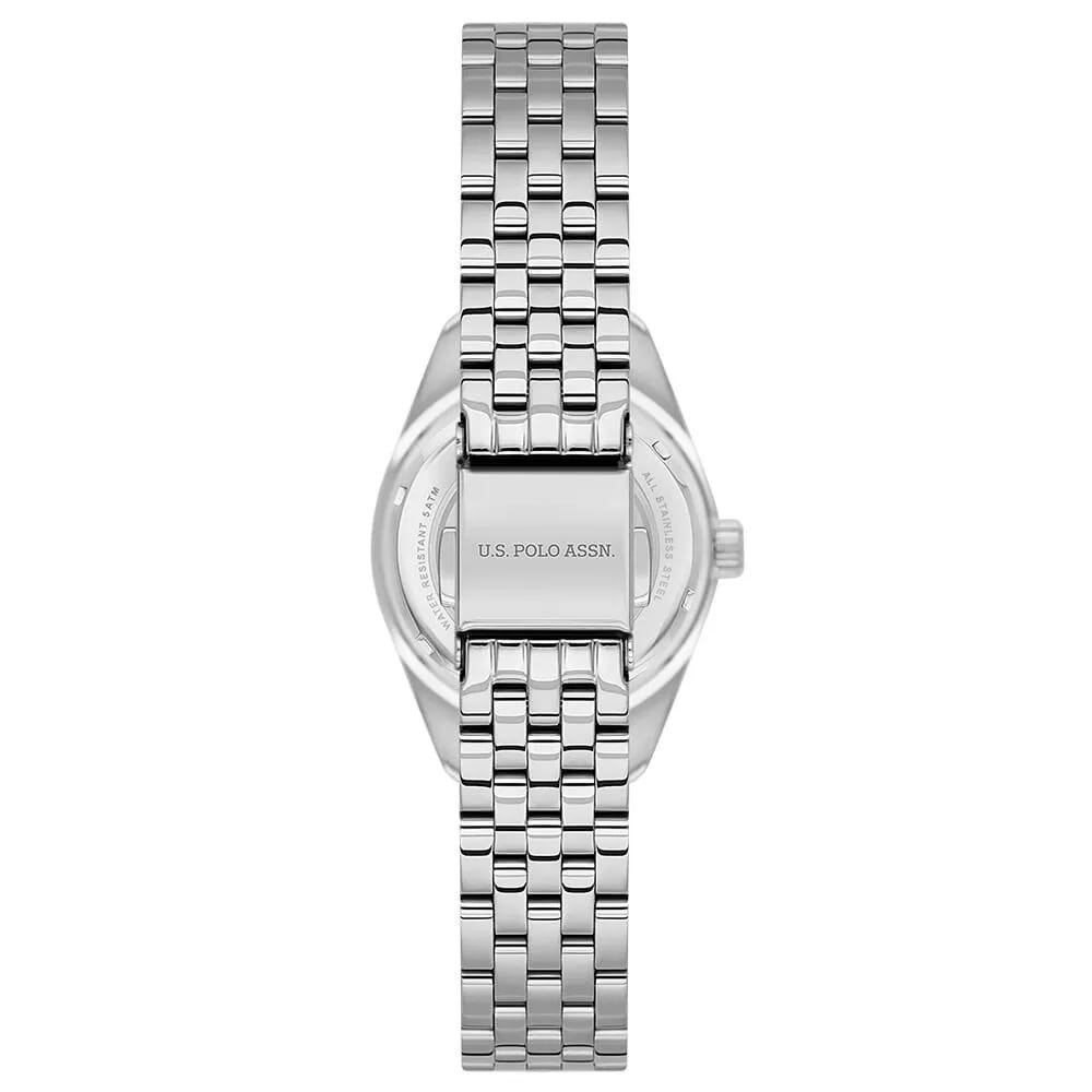 Женские наручные часы U.S. Polo Assn. Stile USPA2109-01 — это стильный и лаконичный аксессуар, выполненный в форме квадрата. Модель изготовлена из стали серебристого цвета, придающий часам роскошный вид. Циферблат с лаконичными центральными часовой, минутной и секундой стрелками. Защиту циферблата обеспечивает минеральное стеклоМинеральное стеклоМинеральное стекло представляет собой искусственно выращенный минерал кварца. Такое стекло отличается особой устойчивостью к повреждениям и царапинам. Уступает по некоторым качествам сапфировому стеклу., устойчивое к мелким повреждениям. Часы оснащены кварцевым механизмом, гарантирующим точность и минимальное обслуживание. Водонепроницаемость 3 АТМ позволяет использовать часы в повседневных условиях — при мытье рук или под лёгким дождём. Браслет выполнен из стали и оснащён раскладной застёжкойРаскладная застёжкаТакой тип застёжки используется только на браслетах из металла. Она никогда не раскрывается полностью, происходит разделение на 2 и более частей. Раскладывающая застёжка снизит вероятность потери часов к минимуму., обеспечивающей комфорт и уверенную фиксацию на запястье. Толщина корпуса составляет 8 мм, а его размер 28 мм, что делает часы компактными и удобными в носке. Эти часы станут универсальным аксессуаром для уверенных в себе женщин, которые ценят сочетание стиля, качества и эстетики — идеальный выбор для повседневного образа и торжественных случаев.