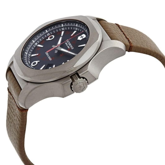 Мужские швейцарские часы Victorinox I.N.O.X. Titanium 241778, кварцевый механизм с высокой точностью. Сапфировое стеклоСапфировое стеклоПрочный и надёжный материал из кристалла сапфира синтетического происхождения, характеризующийся особой твёрдостью и устойчивостью к царапинам и повреждениям. с трёхслойным антибликовым покрытием. Корпус часов выполнен из титана. Стрелки и метки с люминесцентным покрытиемЛюминесцентное покрытиеПозволяет считывать показания времени в темноте. Производители наносят на стрелки, часовые индексы, безель или поверхность циферблата светонакопительный состав, дающий холодное свечение.. Класс водозащиты: 200 метров, позволит плавать, нырять и заниматься другими водными видами спорта. Кожаный ремешок.