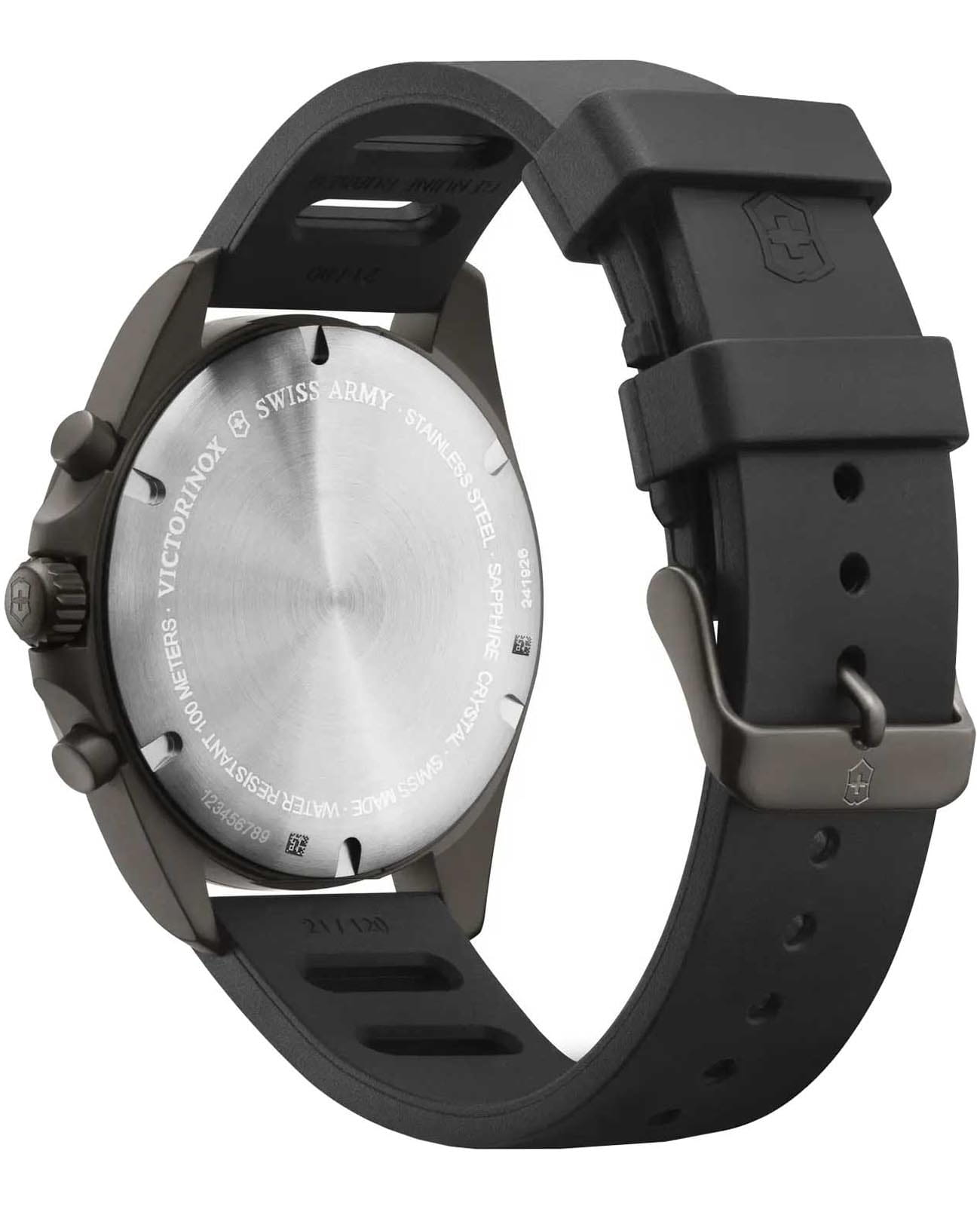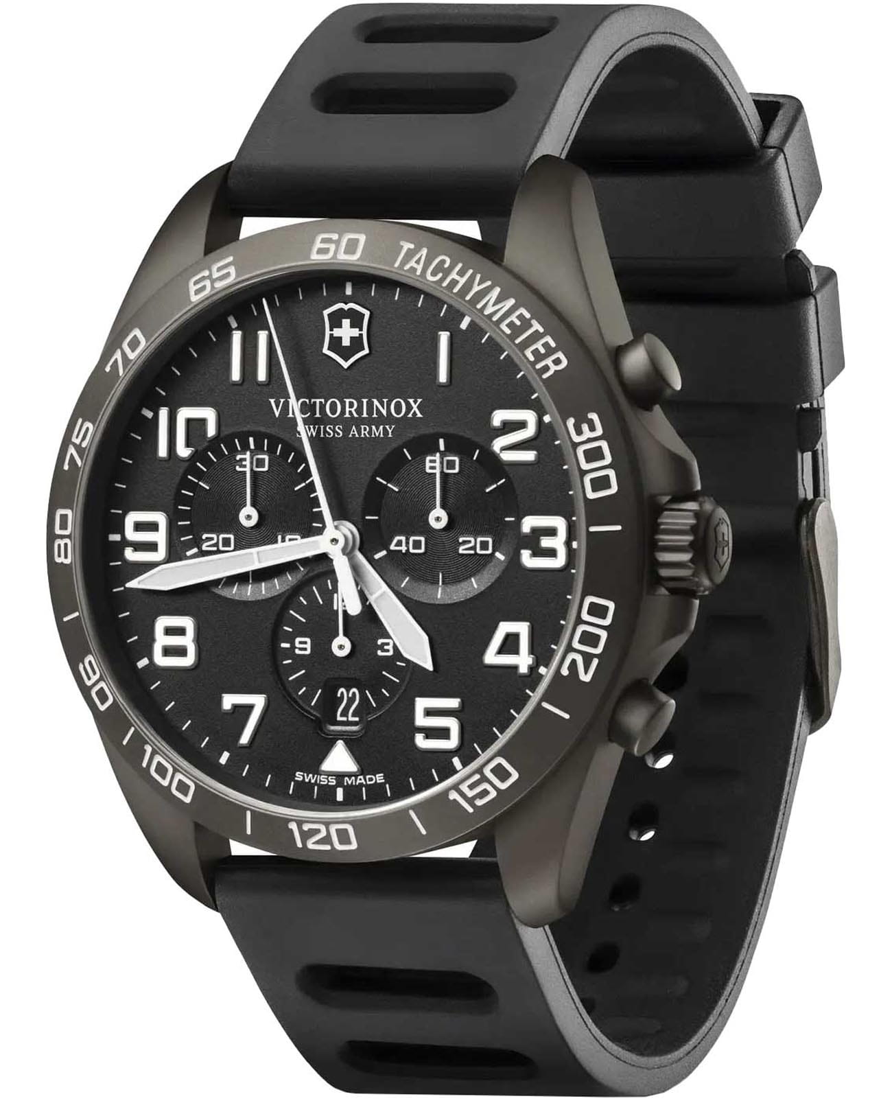 Мужские швейцарские часы-хронографХронографФункция позволяет измерять отрезки времени с особой точностью: часы, минуты, секунды. Верным признаком хронографа является наличие на циферблате 3 дополнительных окошек-счётчиков. Victorinox Fieldforce Sport Chronograph 241926.1 с надёжным кварцевым механизмом. Сапфировое стеклоСапфировое стеклоПрочный и надёжный материал из кристалла сапфира синтетического происхождения, характеризующийся особой твёрдостью и устойчивостью к царапинам и повреждениям. с трёхслойным антибликовым покрытием. Корпус часов выполнен из нержавеющей стали 316L. Практичный резиновый ремешок на стандартной застёжке. Влагозащита: 100 метров, позволит плавать, нырять и заниматься другими водными видами спорта. Окошко даты находится в положении 6 часов, стрелки и метки с люминесцентным покрытиемЛюминесцентное покрытиеПозволяет считывать показания времени в темноте. Производители наносят на стрелки, часовые индексы, безель или поверхность циферблата светонакопительный состав, дающий холодное свечение., тахиметрТахиметрРазмеченная шкала, располагается на ободке или безеле часов. Тахиметр позволяет рассчитать скорость на определённом участке пути, расстояние измеряется в километрах или милях.. В комплект вместе часами входит швейцарский нож Victorinox Spartan PS!