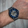 Модель Wainer WA.25511-B сочетает элегантность, швейцарское качество и техническое совершенство. Корпус диаметром 46 мм выполнен из нержавеющей стали 316L с безельБезельВнешний ободок, закрепляющий стекло. В спортивных часах так называется поворотное кольцо с делениями на циферблате, выполняет роль таймера – замеряет отрезки времени на шкале. Неподвижный безель – элемент декора. Однонаправленно вращающийся безель на дайверских часах позволяет фиксировать моменты погружения и выныривания на поверхность. с PVD-покрытиемPVDУльтратонкое покрытие наносится в технике вакуумного напыления, сочетает в себе нитрид титана особой прочности со слоем золота или оксида хрома. Несёт в себе декоративную или защитную функцию., обеспечивая прочность и долговечность. Скелетонизированный циферблат раскрывает сложность автоматического механизма Landeron Depa DP2072, а сапфировое стеклоСапфировое стеклоПрочный и надёжный материал из кристалла сапфира синтетического происхождения, характеризующийся особой твёрдостью и устойчивостью к царапинам и повреждениям. защищает дисплей от царапин и механических повреждений. Прозрачная задняя крышка подчеркивает эстетику работы механизма, а браслет из нержавеющей стали 316L на застёжке-бабочке с кнопкамиЗастёжка "бабочка"Такой вид застёжки дополняется предохранителями, помогающими избежать случайного раскрытия браслета. Обладают изящным исполнением. гарантирует надежную фиксацию и комфортное ношение. Водонепроницаемость до 50 метров защищает часы от случайных брызг и дождя. Wainer WA.25511-B — это стильный аксессуар для мужчин, ценящих швейцарское качество, современный дизайн и мастерство часового искусства.